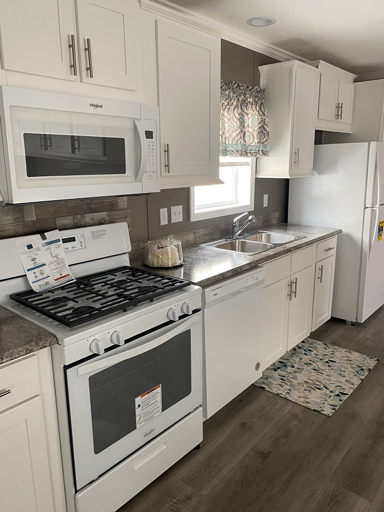 - White Refrigerator, Range, Dishwasher, Microwave over Range